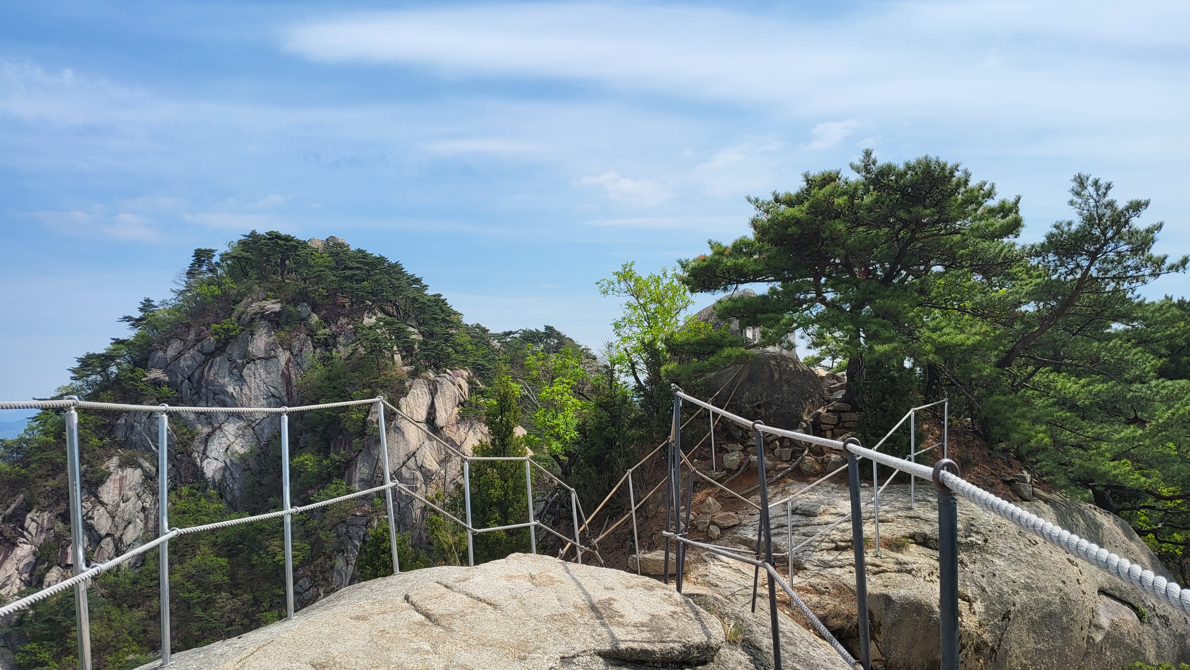 위험한 곳곳에 설치된 로프와 계단 철제 난간들...